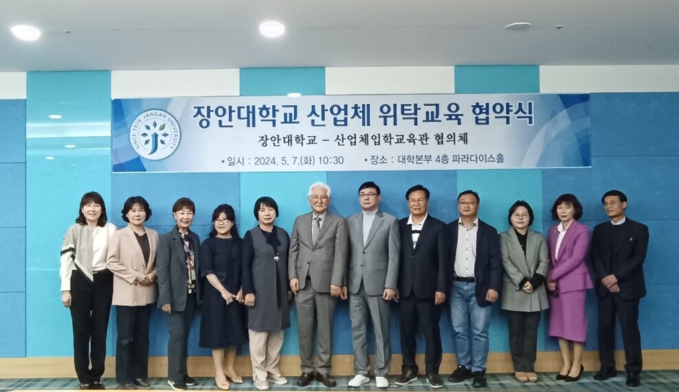 [피앤피뉴스=마성배 기자] 장안대학교(총장: 이종진)는 직장인들의 업무능력 향상과 계속교육 기회를 활성화하고 우수한 직업 전문기술 인재 양성에 기여하는 산업체위탁교육을 운영하기 위하여 지난 5월 7일(화) 장안대학교 대학본부 겸 학술정보관 4층 파라다이스홀에서 미래사회교육재단 등 8개 산업체 대표와 산업체위탁교육 협약식을 개최하였다.