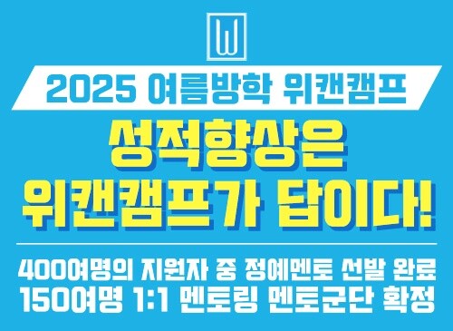 우리 아이들의 밝은 미래를 열겠다는 비전을 갖고 전국의 초중고 학생을 위해 국내 최정상급 학습 노하우와 자기주도적 학습 능력을 갖춘 서울대 출신 공신의 1:1 학습 실무법 멘토링을 제공하는 ‘위캔캠프’가 2025 여름방학캠프 접수 마감 임박 소식을 알렸다.