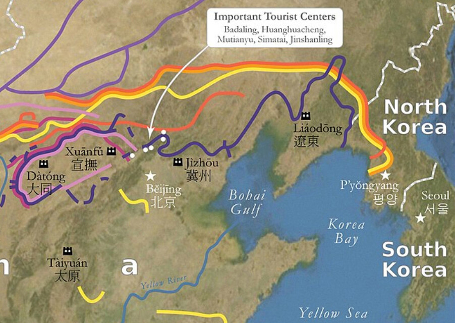 <위키피디아에 올라와 있는 만리장성 지도 파일에 평양까지 이어진 모습>