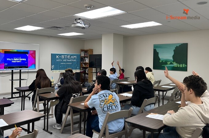 [피앤피뉴스=이수진 기자] 디지털 교육 기업 아이스크림미디어(대표이사 허주환)는 산업통상자원부가 주관하고 한국전자기술연구원에서 총괄하는 ‘지식서비스산업핵심기술개발사업 K-STEAM 연구과제’에 컨소시엄 주관사로 참여해 미국 뉴저지에 위치한 ‘코리아 커뮤니티 센터(Korea Community Center)’에서 11월 4~5일 양일간 미국 5~12학년 학생들을 대상으로 사업 실증을 진행했다.