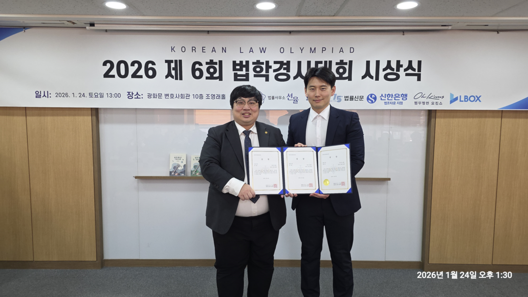 법률사무소 선율이 주최하고 법률신문, 신한은행 법조타운지점, 법무법인 오킴스, LBOX(엘박스)가 후원한 ‘2025년 제6회 법학경시대회’ 시상식이 24일 오후 서울 변호사회관 조영래홀에서 개최됐다.