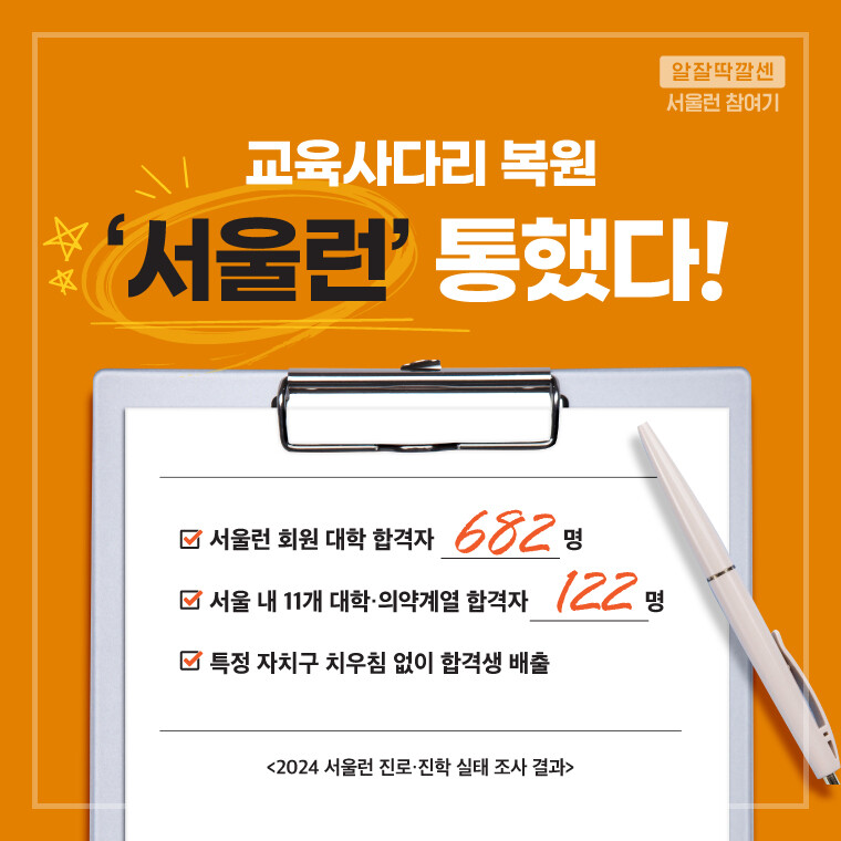 서울런을 통해 682명이 2024학년도 대학에 진학했으며, 수강생 중 수능에 응시한 학생 63%가 합격해 전년(462명) 대비 220명(47.6%) 늘어난 수치다.