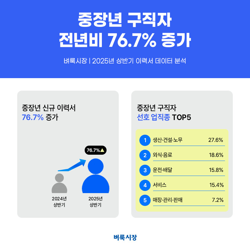 2025년 상반기 중장년 구직자 분석 발표, 중장년 구직자 ‘76.7% 증가’