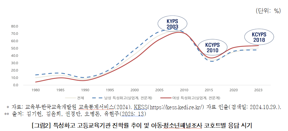 연구진은 2010년 중학교 1학년이었던 패널을 2025년까지 추적해, 고3 때 세운 진학 계획과 실제 이행 결과를 함께 살폈다. 그 결과 고졸을 희망했던 응답자 가운데 실제로 고졸 상태를 유지한 비율은 47.5%에 그쳤다. 대학원 이상 진학을 바랐던 집단에서도 실제로 대학원에 진학한 비율은 20.6%에 불과했다. 말하자면 고교 시절의 선택과 20대 후반의 현실 사이에 적지 않은 간극이 확인된 셈이다.