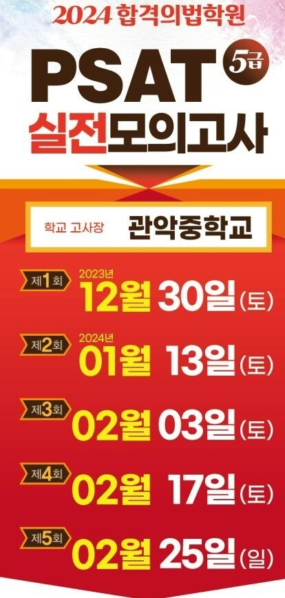 합격의법학원은 ‘2024 PSAT 5급 실전모의고사’ 일정을 발표했다.