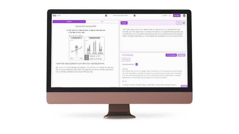 뿐만 아니라, 교육기관을 대상으로 학습 성과를 분석하고 상세한 보고서를 제공하여 학생들의 학습 진행 상태를 체계적으로 관리할 수 있게 해준다. 이를 통해 기관 내 학습자별 성과 비교는 물론, 타 기관과의 비교 데이터를 활용하여 교육 프로그램의 효율성을 극대화할 수 있다. 더불어, TOPIK 시험 대비를 위한 동영상 강의와 기출문제, 온·오프라인 실시간 강의 등 다양한 학습 콘텐츠를 제공하며, 특히 쓰기 영역에 집중한 콘텐츠를 통해 학생들이 학교 과제나 논문 작성에서 실질적인 한국어 실력을 향상시킬 수 있도록 돕는다.