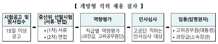 김남옥 개방교류과장은 “정부혁신을 선도하고 일 잘하는 정부를 구현하기 위해 개방형 직위 관련 분야에서 풍부한 경험과 전문역량을 갖춘 유능한 인재들의 많은 관심과 참여를 바란다”고 당부했다.