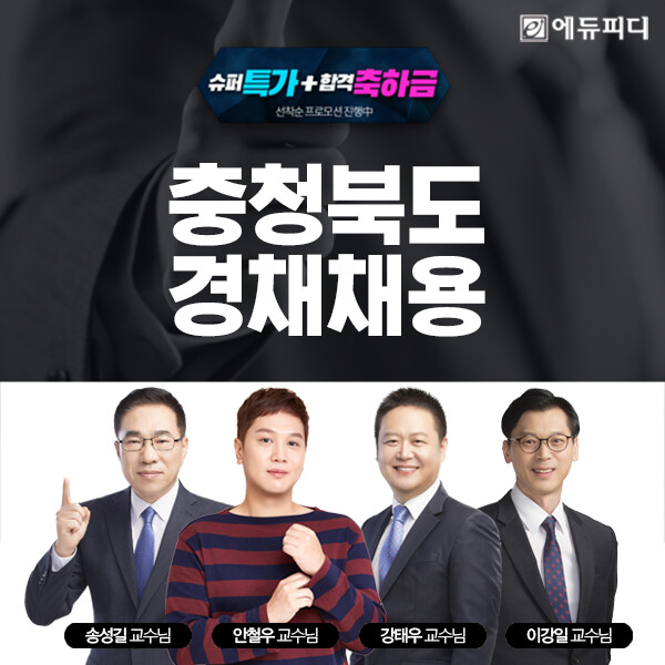 이에 에듀피디는 충청북도 경채 시험에 가장 효율적으로 대비할 수 있는 ‘합격패키지’ 강의를 ‘이론·문풀·기출해설특강’ 과정으로 기획하고 짧은 수험 기간에 맞춰 과락을 넘기고 합격 점수를 달성할 수 있도록 기본이론에 대한 개념 정리와 함께 문제 적응 훈련, 기출문제 풀이까지 탄력적인 진도 진행과 압축 커리큘럼을 선보인다.