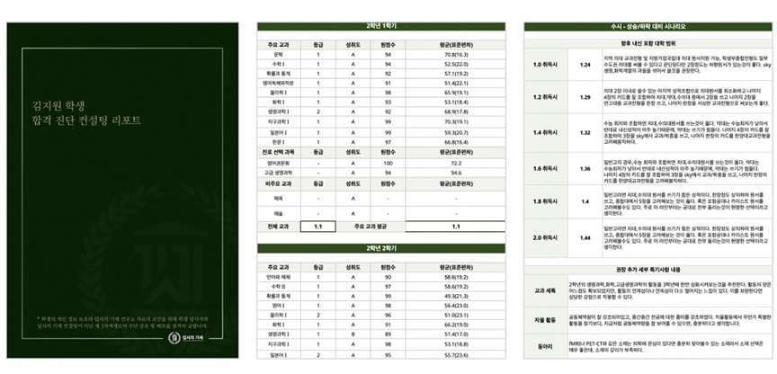 학생의 명확한 목표 설정을 위해 모의고사 및 내신성적을 기반으로 입시 로드맵을 설계하는 프로그램인 ‘합격컷 진단컨설팅’은 총 2회차로 구성됐다.