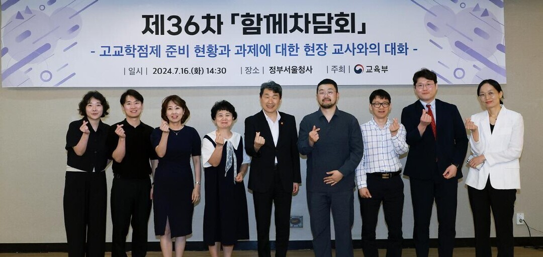 <이주호 부총리 겸 교육부 장관은 지난 7월 16일(화), 정부서울청사에서 ‘고교학점제 준비 현황과 과제’를 주제로 제36차 함께차담회를 현장 교사들과 함께 개최했다.>