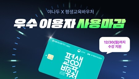 야나두는 평생교육바우처 우수이용자의 바우처 사용 마감일인 12월 30일까지 수강 지원을 지속한다고 19일 밝혔다.