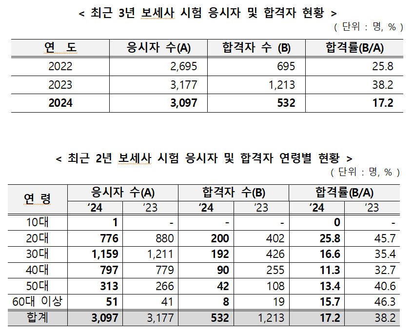 올해 보세사 시험의 합격자 평균 점수는 67점, 최고 점수는 85.6점으로 나타났다. 특히 20~30대 응시자가 전체의 62.5%(1,935명)를 차지했고, 이들 중 73.7%(392명)가 합격해 청년층의 관심이 높은 것으로 확인됐다.