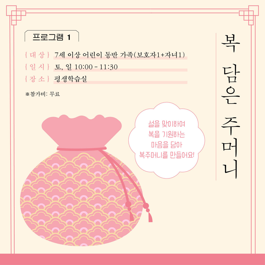 이번 프로그램은 새해 복을 기원하는 체험 활동과 전통놀이를 통해 가족 간 화합과 소통의 시간을 제공할 목적으로 기획되었다.