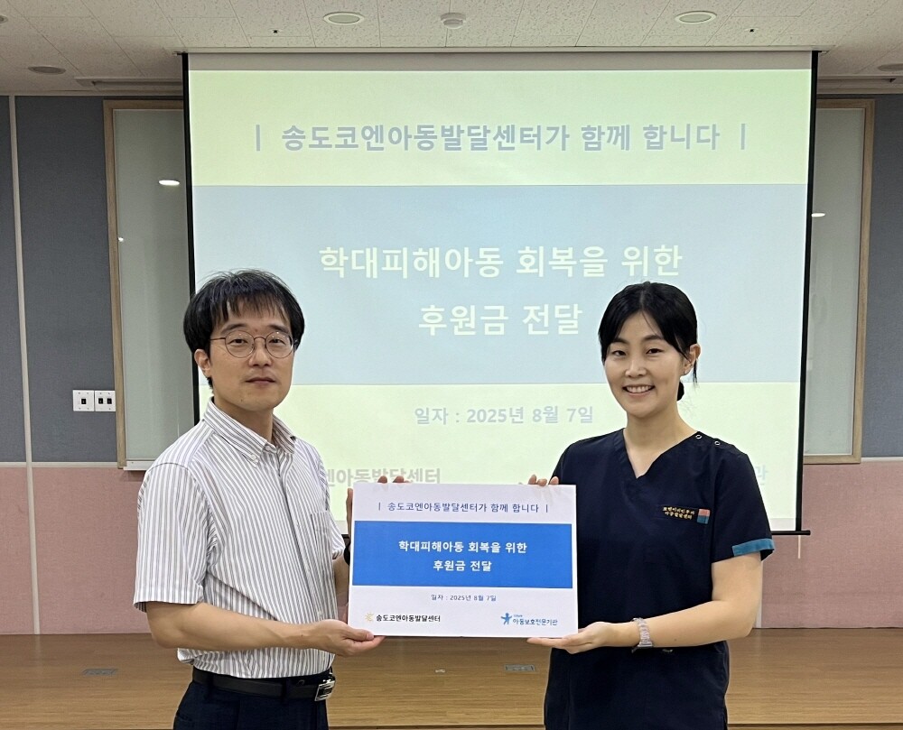송도코엔이비인후과 아동발달센터는 지난 2024년 10월, 인천남부아동보호전문기관과 업무협약을 체결하고 학대피해아동의 심리·정서 회복을 위한 다양한 지원 활동을 이어왔다. 이번 후원금은 학대피해아동 가정의 생활 안정 지원과 아동의 심리·정서 치유 프로그램 운영에 소중하게 사용될 예정이다.