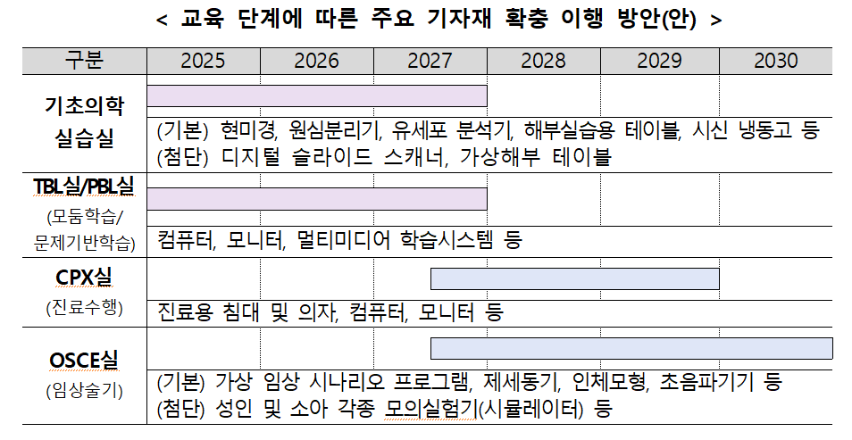 단기적으로는 의대 교육용 기자재를 지원하고, 가상해부 테이블과 같은 최첨단 장비를 도입해 학생들이 실질적인 의료 기술을 배울 수 있는 기회를 확대한다.