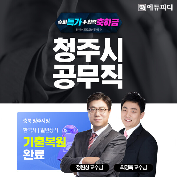 에듀피디가 10월 11일(토)에 치러지는 청주시 공무직 공개경쟁채용 시험에 대비해 최신 청주시 공무직 기출문제 복원 자료를 제공하는 ‘합격패키지’ 인강을 선보이고 수강생을 모집한다고 밝혔다.