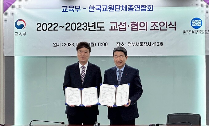 이주호 부총리 겸 교육부 장관은 “현장의 선생님들이 교육활동에 전념할 수 있는 여건을 조성하고 교육변화의 주체가 될 수 있도록 한국교총과의 협력을 더욱 강화하고, 근무여건 개선을 위해 합의된 내용을 상호 성실하게 이행”하겠다고 전했다.