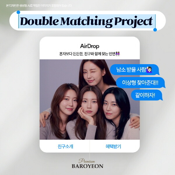 결혼정보회사 바로연은 친구와 함께 인연을 찾을 수 있는 'Double Matching Project (더블 매칭 프로젝트)' 이벤트를 진행한다고 밝혔다.