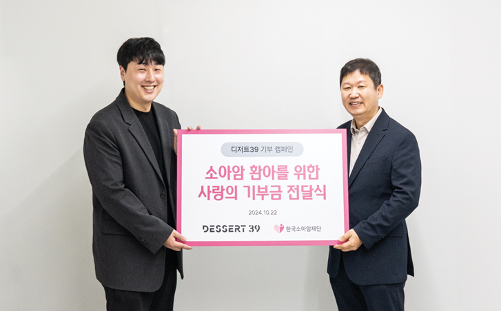 디저트39는 소아암 환우들을 위해 9월 한 달 동안 제로칼로리 및 저칼로리 음료 판매 수익과, 지난 7월부터 전국 홈플러스 매장에서 판매된 RTD (Ready To Drink) 음료의 수익금을 합쳐 한국소아암재단에 전달했다.