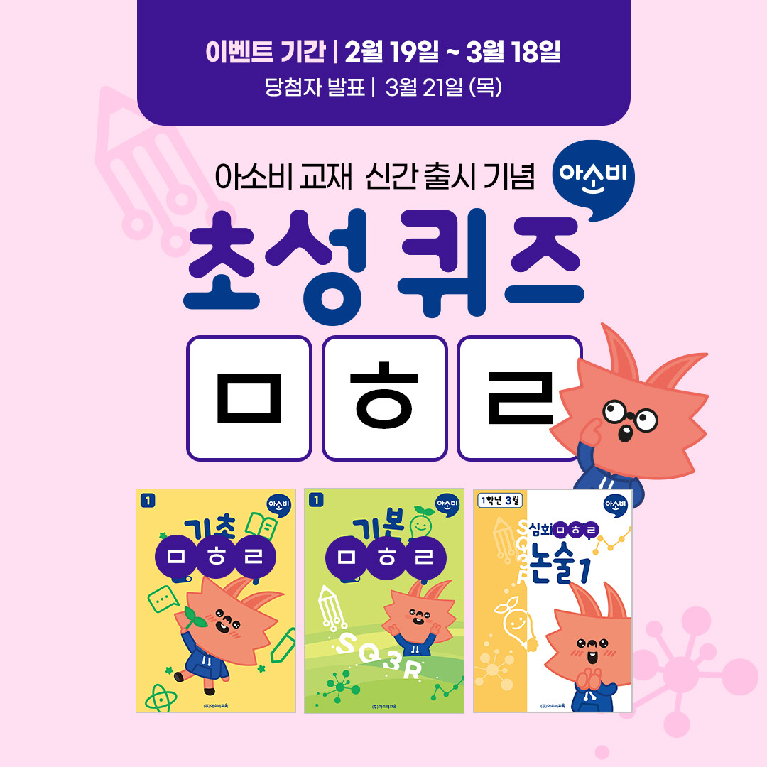 아소비 초등 교재 리뉴얼&신간 출시 기념 초성 이벤트 진행