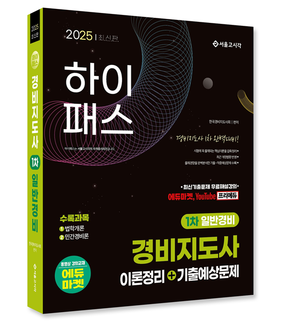 이에 수험서의 대표주자인 도서출판 서울고시각은 수험생들이 만점에 근접한 점수를 획득하는데 실질적인 도움이 되도록 경비지도사 1차 시험을 대비하여 2025 하이패스 경비지도사 1차 이론정리+기출예상문제(일반경비) 출간했다.