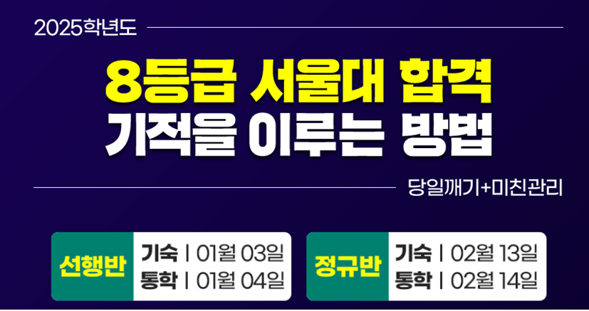 학원 관계자는 "실제로 내부 커리큘럼을 충실하게 따라온 8등급 학생이 서울대 합격하는 기적을 이뤘다"며, "당일깨기와 미친 관리를 통해 학생들의 잠재력을 이끌어내는 것은 물론이고, 성적까지 수직상승할 수 있게 돕는 만큼 많은 분들이 자신의 꿈을 달성하기 위해 강의를 듣길 바란다"고 전했다.