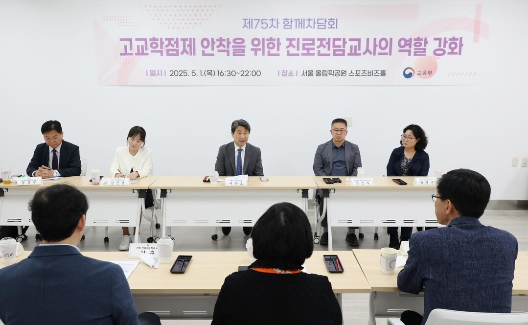 이주호 부총리 겸 교육부 장관은 지난 1일 서울 올림픽공원에서 열린 ‘제75차 함께차담회’에서 진로전담교사와 함께 ‘고교학점제 안착을 위한 진로전담교사의 역할’을 주제로 다양한 의견을 나눴다.