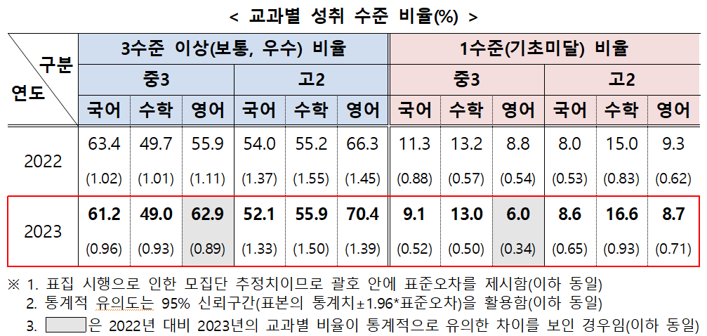 교육부와 한국교육과정평가원은 17일 ‘2023년 국가수준 학업성취도 평가 결과’를 공개했다.