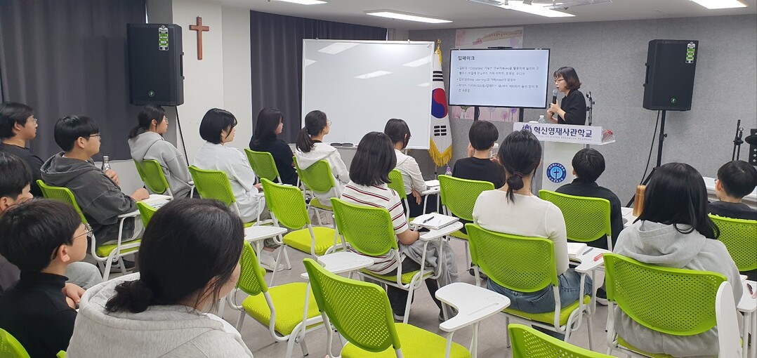 이날 특강은 국제 혁신영재사관학교 중‧고등생을 대상으로 진행했으며, 김지연 약사는 디지털 세대를 위한 성경적 성교육을 펼쳤다.