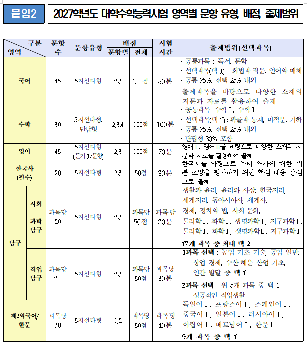2027학년도 수능의 구체적인 출제 원칙과 시행 기본계획은 2026년 3월에 발표될 예정이다.