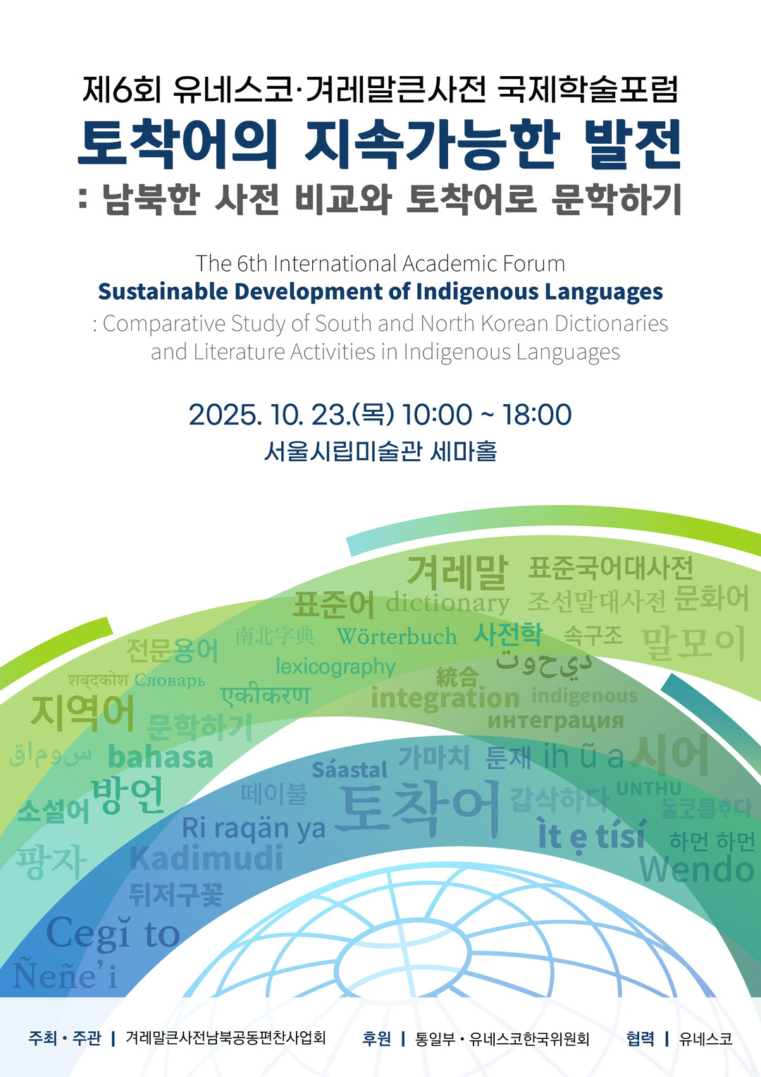 제6회 유네스코·겨레말큰사전 국제학술포럼 23일 개최...“남북 사전 비교·토착어 문학 논한다”