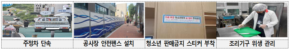 특히 어린이 보호구역 내 불법주정차 단속과 노후 안전시설 개선이 집중적으로 이루어졌으며, 유해식품 및 KC 미인증 제품, 불법 광고물, 불법 영업시설은 적발 즉시 행정처분 조치됐다.