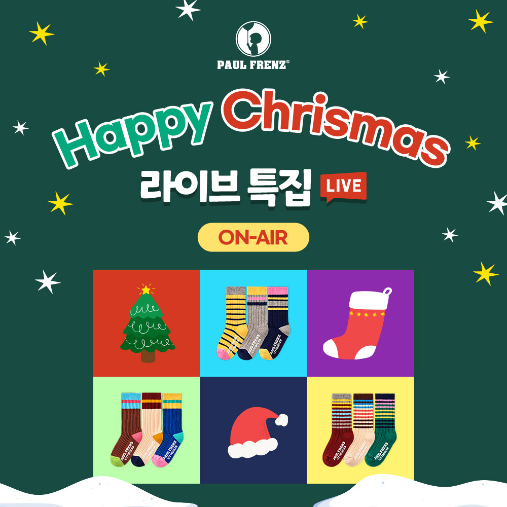 폴프랜즈㈜(대표 민형미)의 원사이즈양말 브랜드 ‘폴프랜즈’가 오는 12월 11일 수요일 오전 11시 네이버 쇼핑라이브를 통해서 ‘원사이즈 양말 미리 만나는 해피 크리스마스 특집 LIVE’ 방송을 진행한다고 밝혔다.