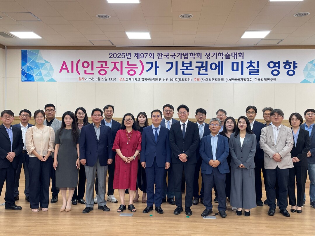 [피앤피뉴스=마성배 기자] AI 기술의 비약적인 발전이 기본권에 어떤 영향을 미치고 있는지 진단하고, 이에 대한 헌법적 대응 방안을 논의하는 자리가 마련됐다. 한국법제연구원(원장 한영수)은 6월 27일 전북대학교 법학전문대학원에서 유럽헌법학회, 국가법학회와 공동으로 ‘AI가 기본권에 미칠 영향’을 주제로 학술대회를 개최했다.