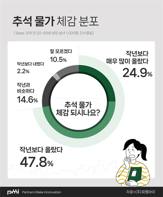 데이터 컨설팅 기업 ㈜피앰아이(PMI)는 전국 만 20~69세 성인 남녀 1,000명을 대상으로 실시한 ‘2025 추석 연휴 인식 조사’ 결과를 1일 공개했다.