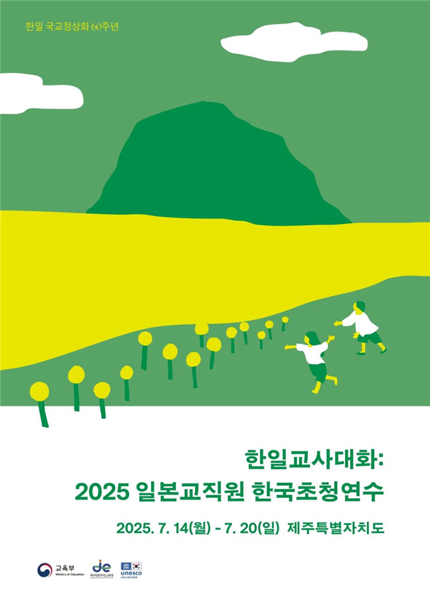 교육부는 제주도교육청, 유네스코한국위원회와 공동으로 오는 20일까지 ‘2025 일본 교직원 한국 초청 연수’를 진행한다고 밝혔다. 이번 연수는 한일 국교 정상화 60주년과 ‘한일 교사 대화’ 25주년을 기념해 양국 간 교육 신뢰와 연대의 의미를 되새기는 뜻깊은 행사다.