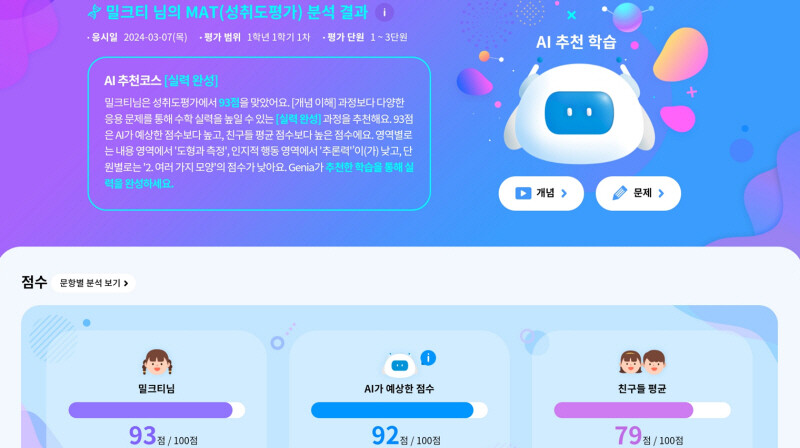 이에 천재교육·천재교과서의 밀크T가 제공하는 MAT(Milk-t Achievement Test) 성취도평가 서비스는 홈스쿨링 병행 가정에 매우 유용한 자원이 되고 있다.