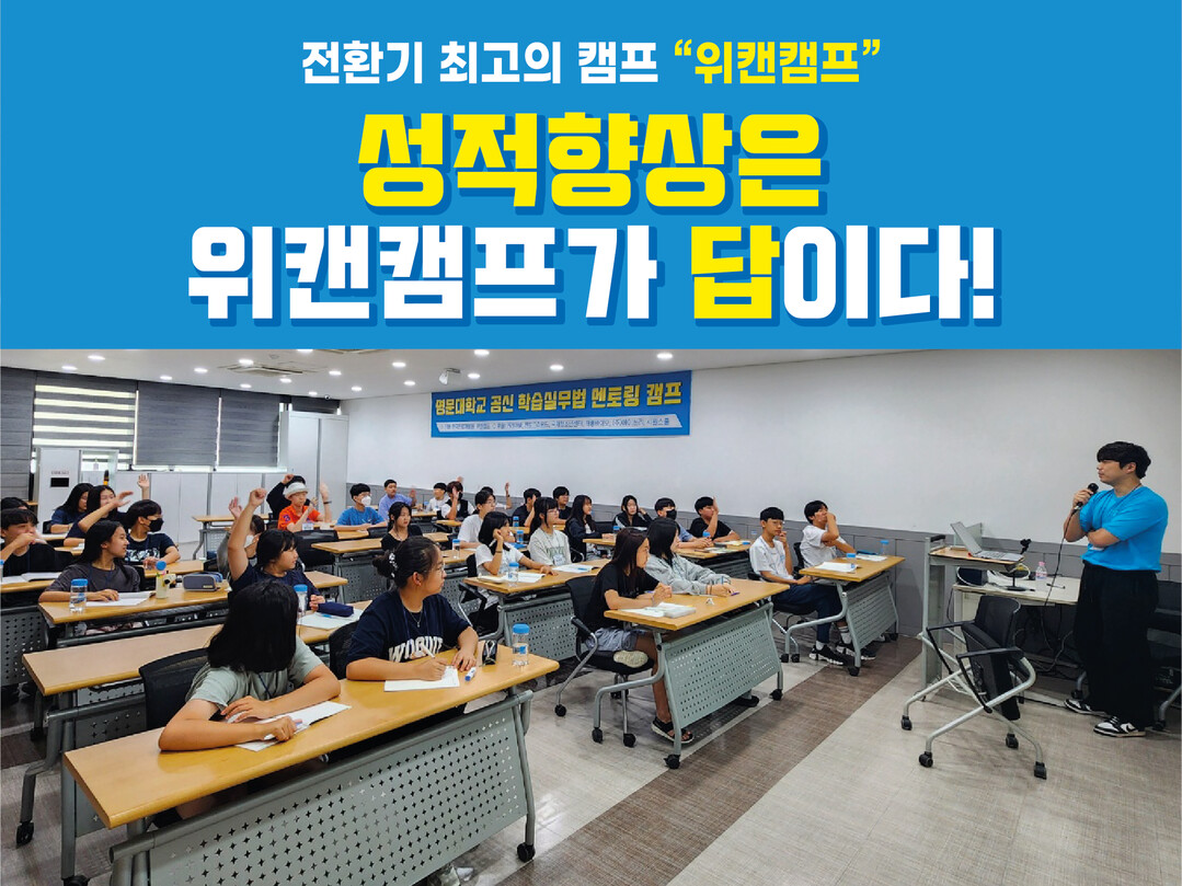 위캔캠프는 서울대 공신과 함께 2박 3일간 학습실무법 멘토링을 진행해 학생들의 성적향상, 진로설정을 돕는 전환기 방학캠프다.