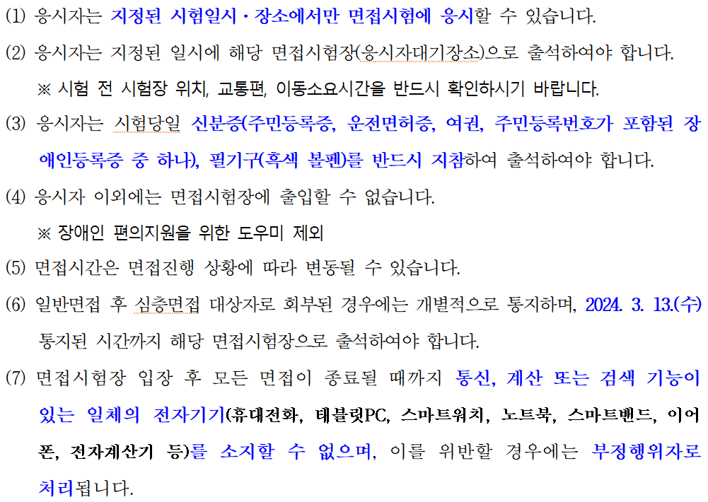 (1) 2024. 3. 12.(화) 일반면접 : 질문·답변식 개별면접