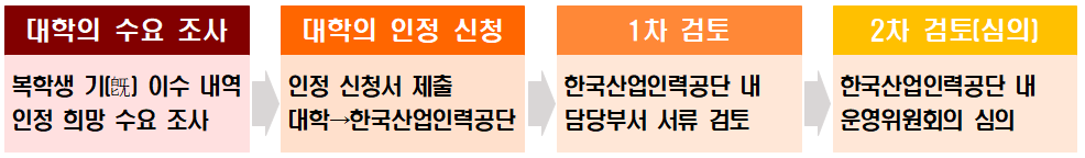 대학은 학기 시작 전 복학생을 파악해 한국산업인력공단에 신청하면 운영위원회의 심의를 거쳐 교육·훈련 이수 내역을 인정받고, 학생들은 해당 과정의 학습을 이어갈 수 있게 된다.