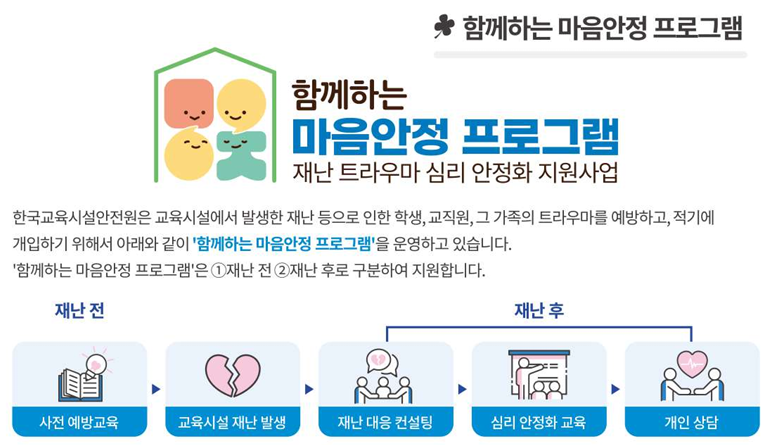 ▲심리 안정화 지원 ‘함께하는 마음안정 프로그램’ 안내 자료(사진 제공 : 한국교육시설안전원)