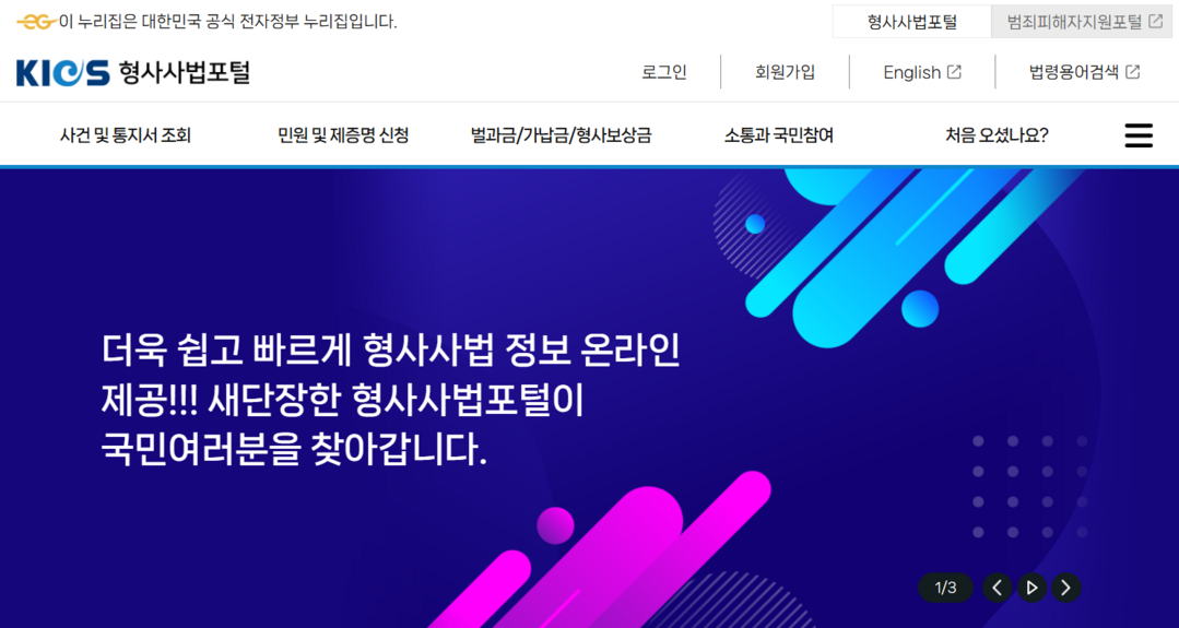<KICS 형사사법포털 홈페이지 캡쳐>