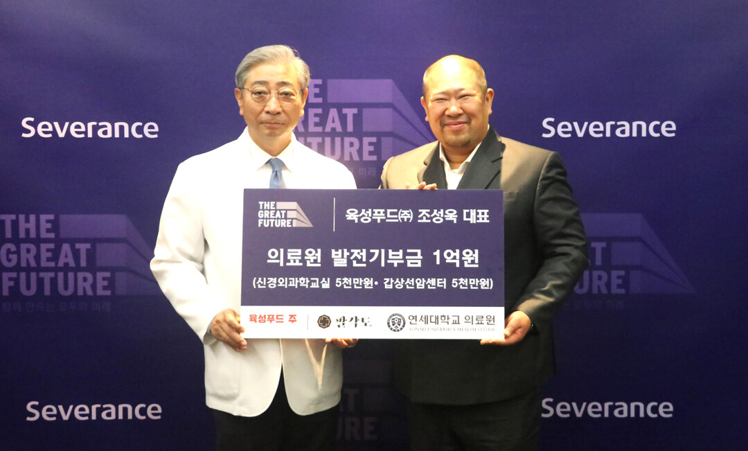 [피앤피뉴스=서광석 기자] 프리미엄 숯불닭갈비 프랜차이즈 팔각도의 모회사 육성푸드(주)가 연세대학교 의료원의 발전금으로 1억원을 기부했다.
