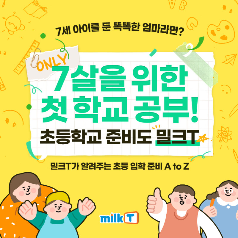 이러한 학부모들의 걱정을 해소하고자 초중고 교과서 발행사인 천재교과서는 오직 7살 눈높이에 맞춘, 예비 초등생 전용 학습 서비스 ‘밀크T키즈’를 운영하고 있다.