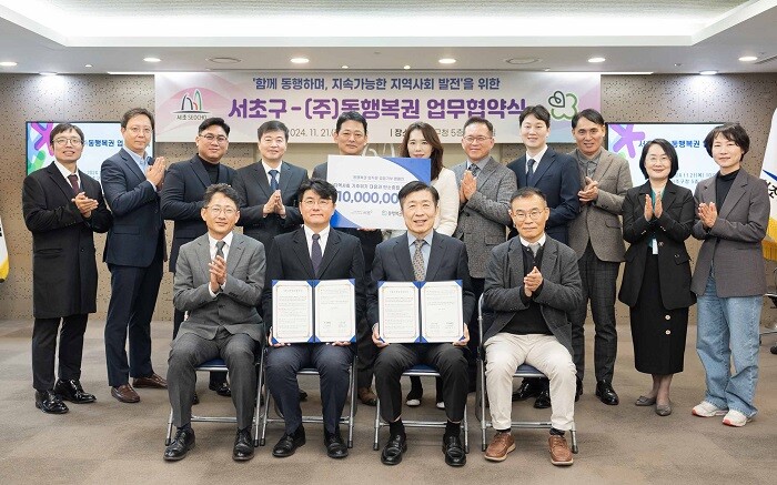 복권수탁사업자 동행복권(대표 홍덕기)이 지역사회 탄소중립 실천을 위해 서초구청과 사회공헌 업무협약(MOU)을 체결했다고 21일 밝혔다.