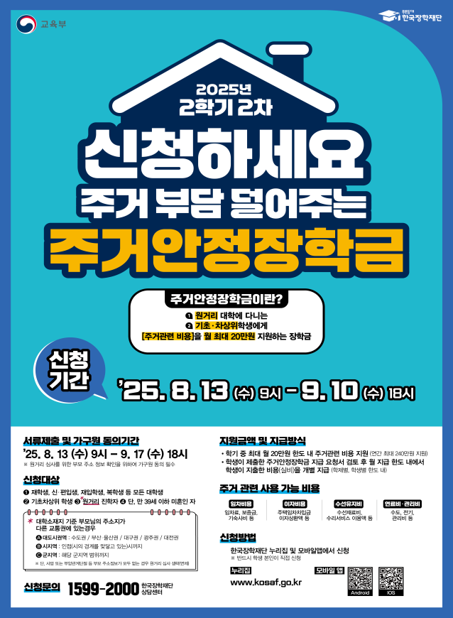 | ▲2025학년도 2학기 2차 ‘주거안정장학금’ 신청 홍보 포스터 |
