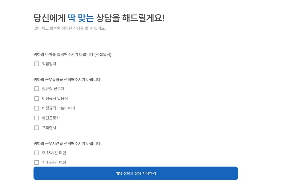 이는 일반인들이 자신의 어떠한 상황이 법적 결과에 영향을 미치는지 어려워하는걸 착안하여 만들어 나홀로 소송이나, 질문하기 어려워하는 취약계층이 쉽게 질문할 수 있도록 설계된 부분이다.