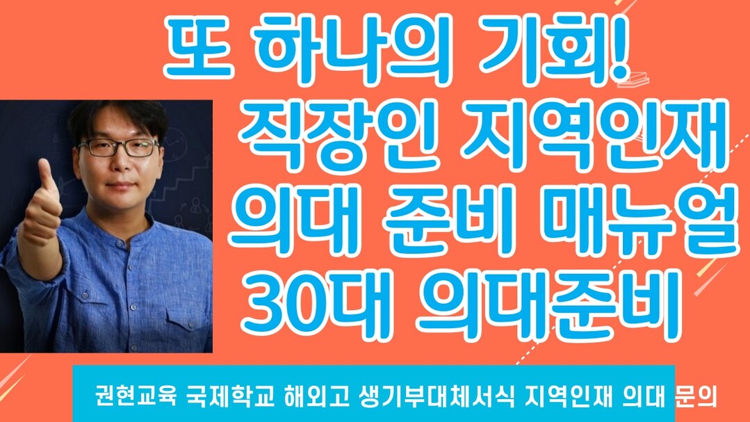 특히 이번 강연회에서 권현대표는 30대 직장인들의 지역인재 의대수시 합격 로드맵과 서류 및 MMI 면접 준비법을 강연해 5달 남은 직장인들의 의대 지역인재 준비 방법을 도울 예정이다.