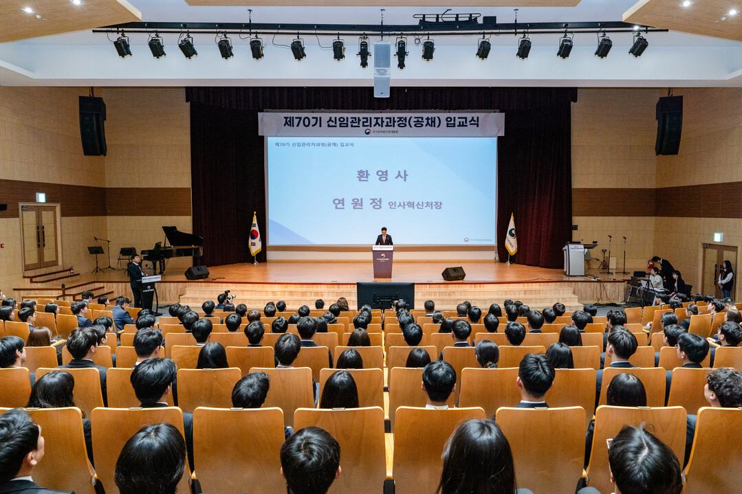 [피앤피뉴스=마성배 기자] 대한민국 행정의 중심축을 이끌 예비 관리자들이 공직사회의 첫걸음을 내디뎠다. 국가공무원인재개발원은 7일, 제70기 신임관리자과정 입교식을 개최하고 제5급 공개경쟁채용시험에 합격한 예비 사무관 306명이 본격적인 교육에 돌입했다고 밝혔다.