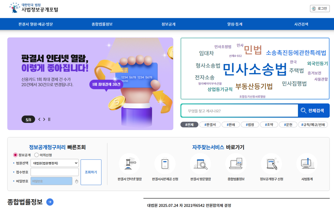 ▲대법원 사법정보공개포털(portal.scourt.go.kr) 홈페이지